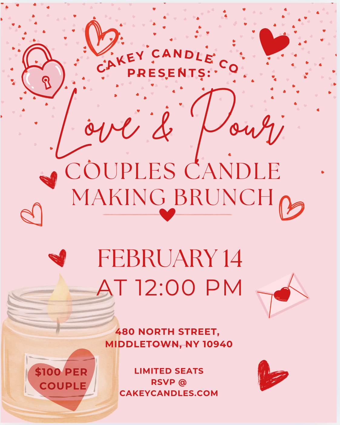 Couples will work together to design and pour a custom candle, choosing scents that reflect connection, warmth, and love. After the candle-making session, enjoy a relaxed brunch setting designed to encourage conversation, laughter, and presence—no rush, no pressure, just quality time.